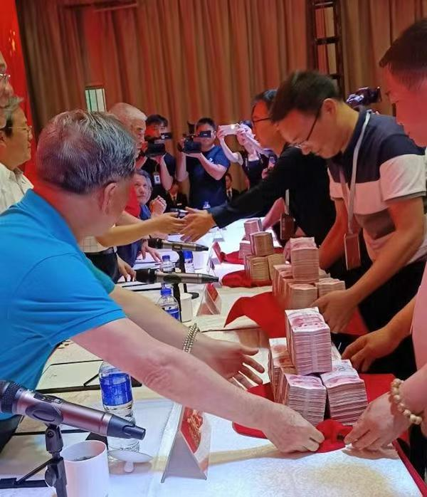 “中國(guó)書法大廈杯”大賽始于2019年,當(dāng)時(shí)的頒獎(jiǎng)現(xiàn)場(chǎng)獲獎(jiǎng)?wù)呙媲埃谴a放整齊、堆積如山的百元現(xiàn)鈔。當(dāng)時(shí)這也被輿論批評(píng)為“土豪風(fēng)撲面”、“大賣場(chǎng)”般的粗鄙?!侗本┩韴?bào)》曾批評(píng)其將書法藝術(shù)“異化”、“江湖氣”重,是以資本對(duì)書法家情懷進(jìn)行“直接碾壓”。